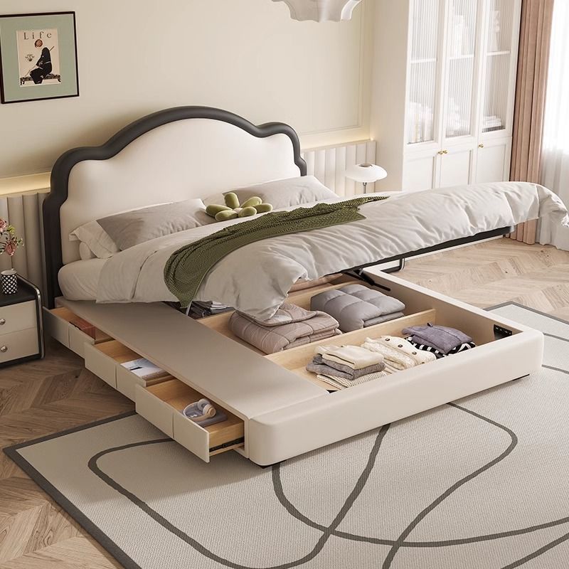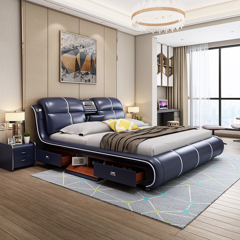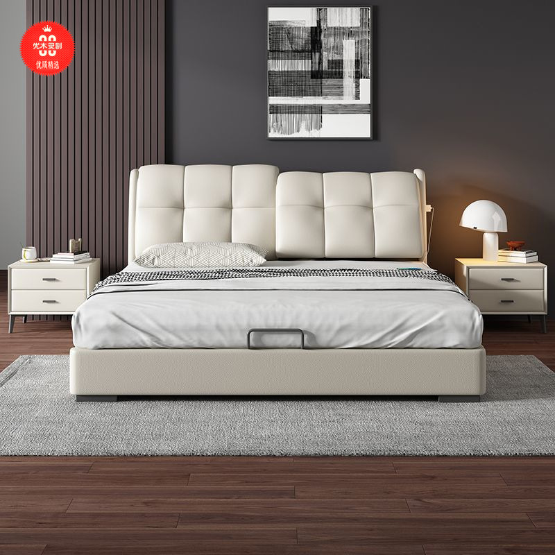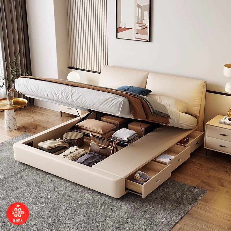 革ベッド本革ベッドモダンシンプル主臥ダブルベッド畳多機能収納スマート