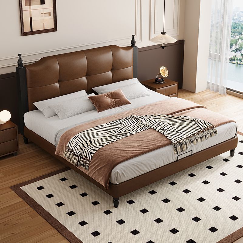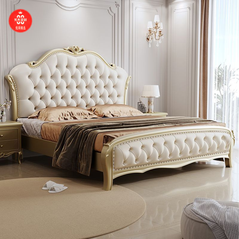 中古風真皮ベッド二人主寝ベッド. 米クリーム風. 米意式の軽い贅沢な結婚ベッド