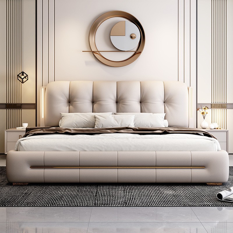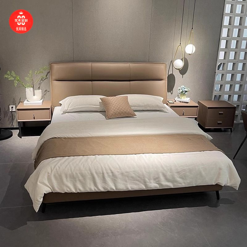 現代のシンプルな卸売牛革ハイエンド大気. 米のベッドは軽くて豪華です。