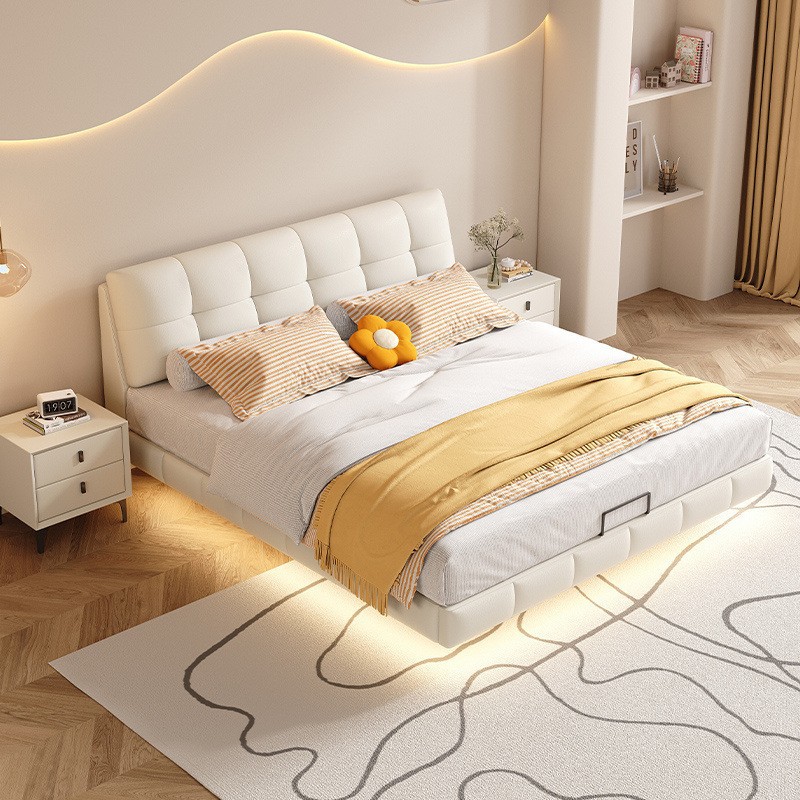 象の耳の貯蔵物の懸濁ベッドの現代の簡単な主な寝台の2人の本革ベッドのクリーム風の収納の高い箱の懸濁ベッド