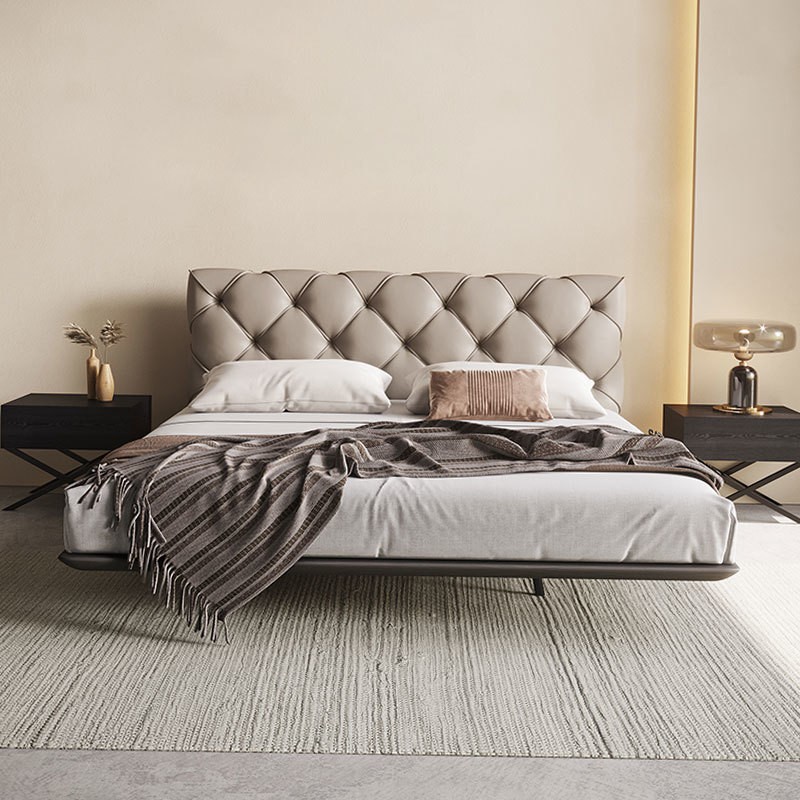 イタリア式の極めて簡単な本皮ベッドの懸濁ベッドの大きさのタイプの寝室の主な寝台のダブルベッドの軽い豪華な頭の階の牛革ベッド