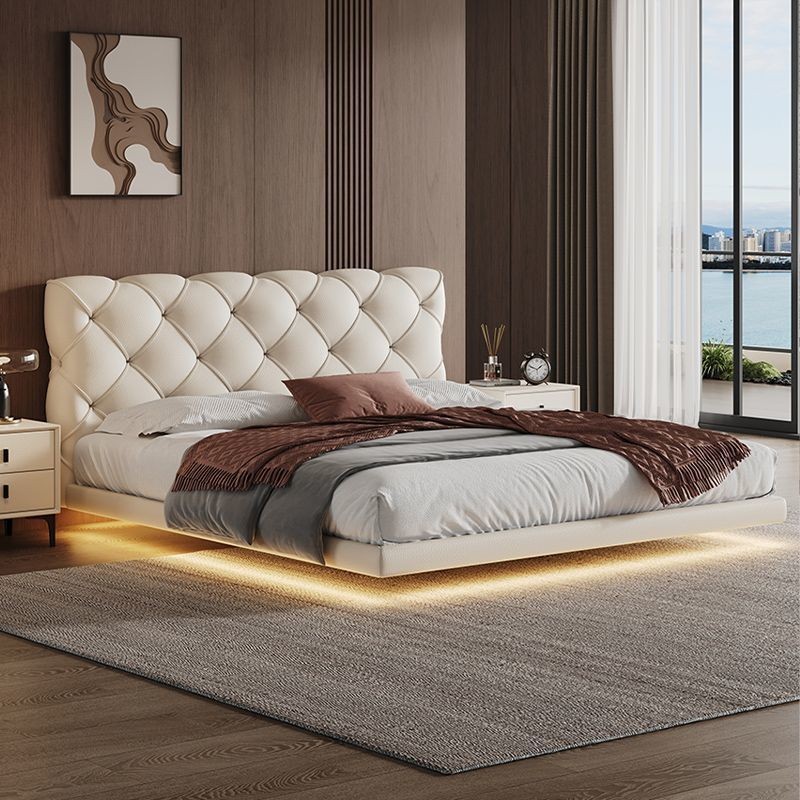 懸濁ベッドの軽豪華な現代波芸術モデルの頭層牛革二人の主臥式の極めてシンプルな真皮ベッド