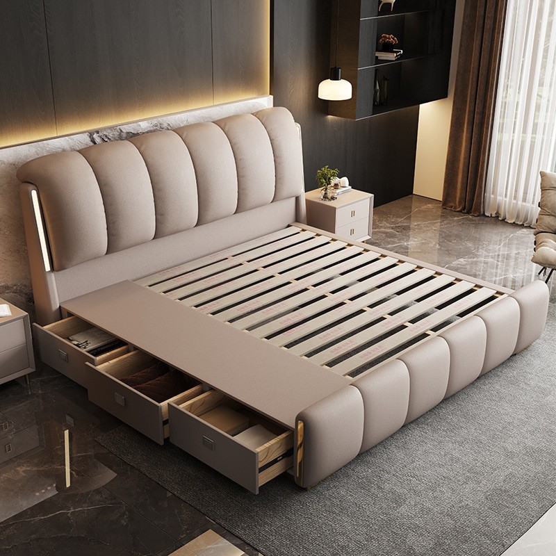 イタリア式の新型ナイトライトのベッドは軽くて豪華です。収納ベッド. 主臥大ベッド