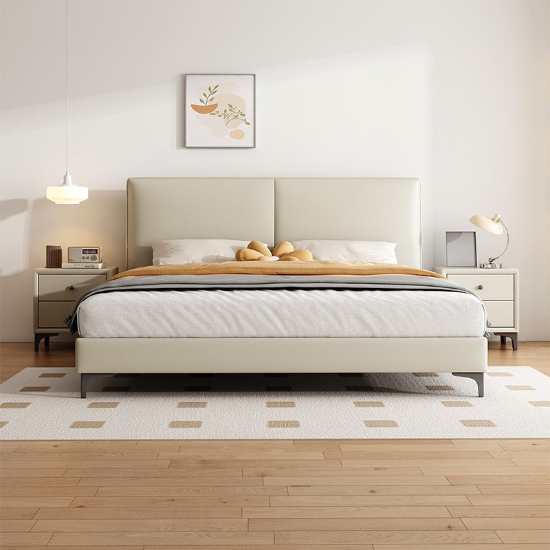 現代のシンプルな象の耳のクリーム風の引き出しの収納物の本物の皮のベッドの多機能の小さいタイプの主な寝台の2人の結婚のベッド