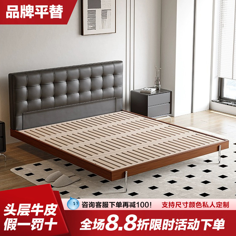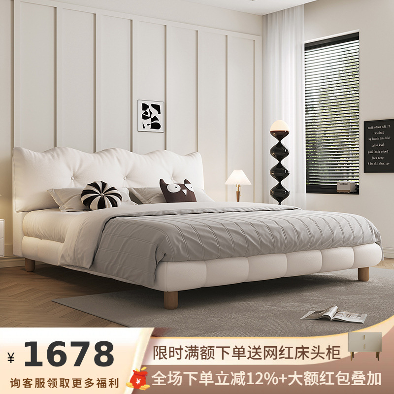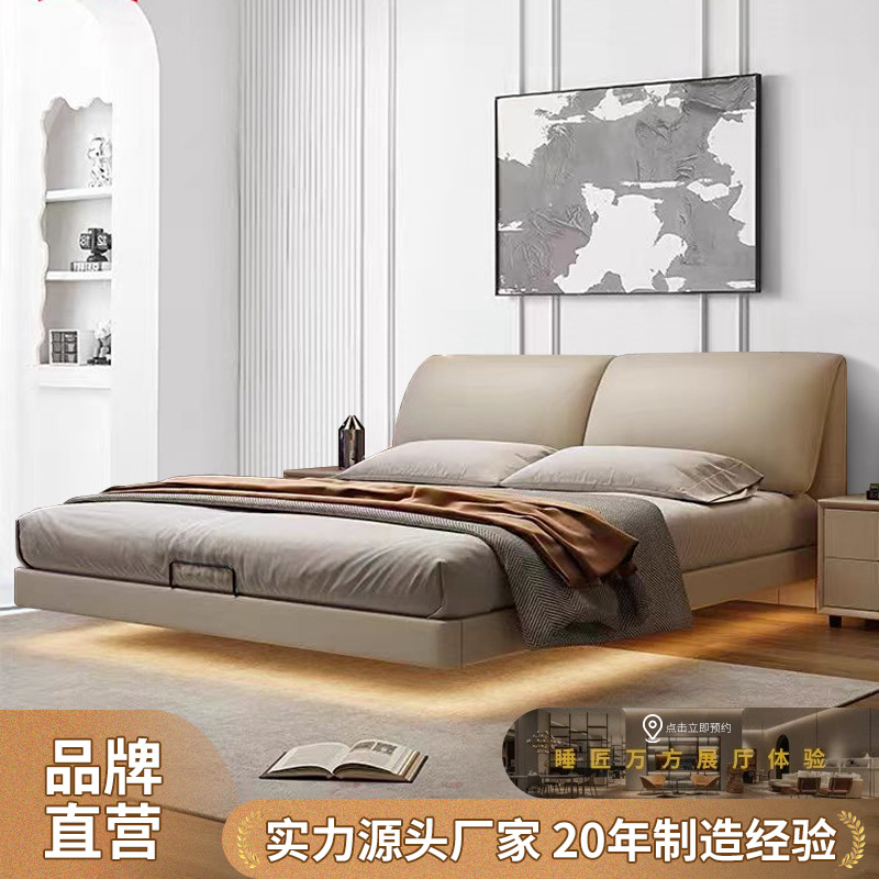 意式轻奢云悠悠悬浮真皮床1.8米奶油风现代简约网红主卧拉扣软包