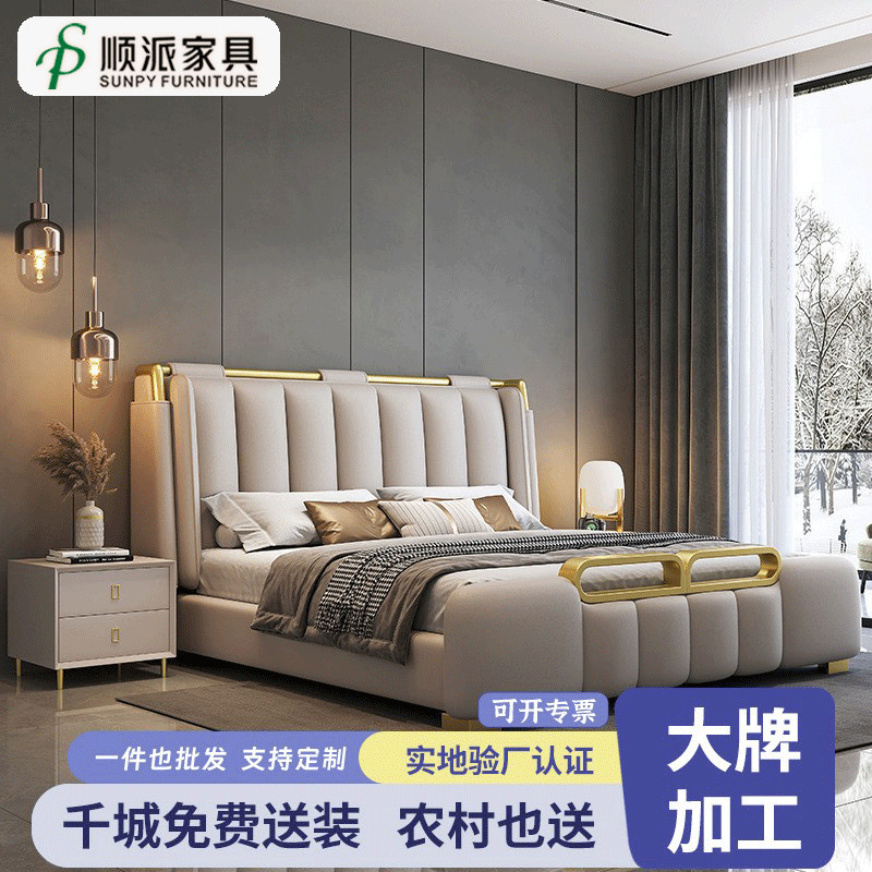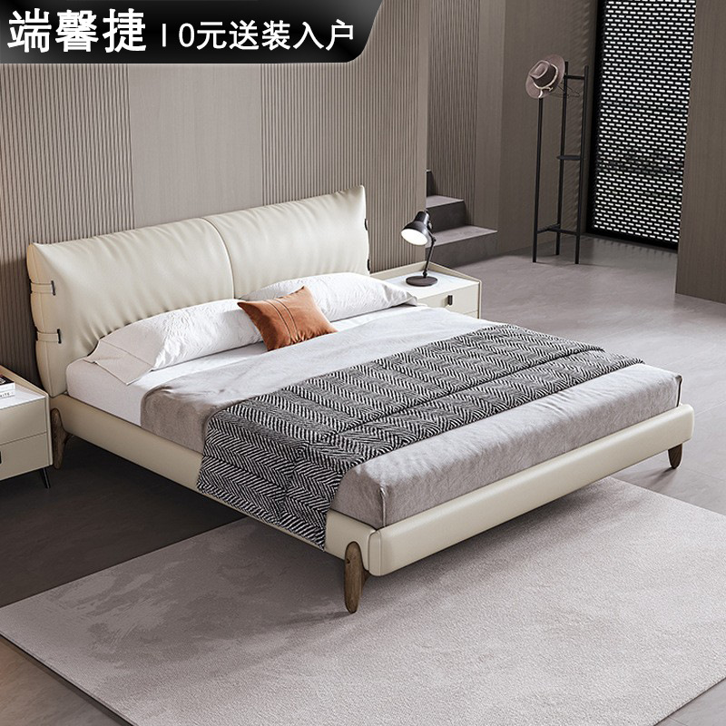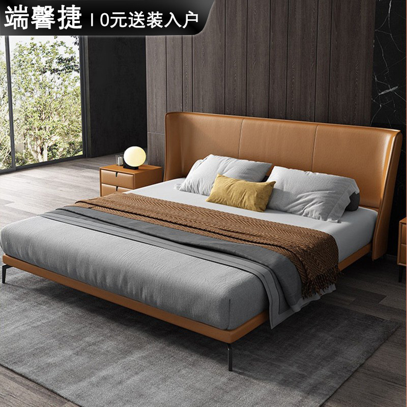 本革ベッド意式軽豪華1.8メートル端現代シンプル1.5メートルツインベッド新型高級主臥2mベッド