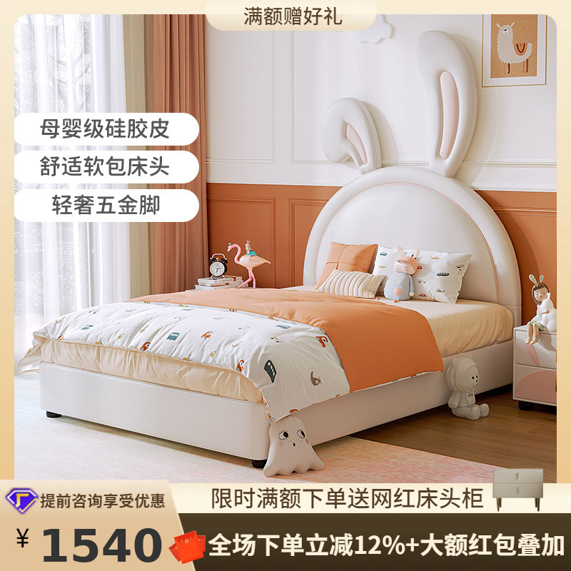 桐語特北欧風ライトラグジュアリー可愛い女の子プリンセスベッドモダンシンプルクリーム系うさぎ革製子供用ベッド