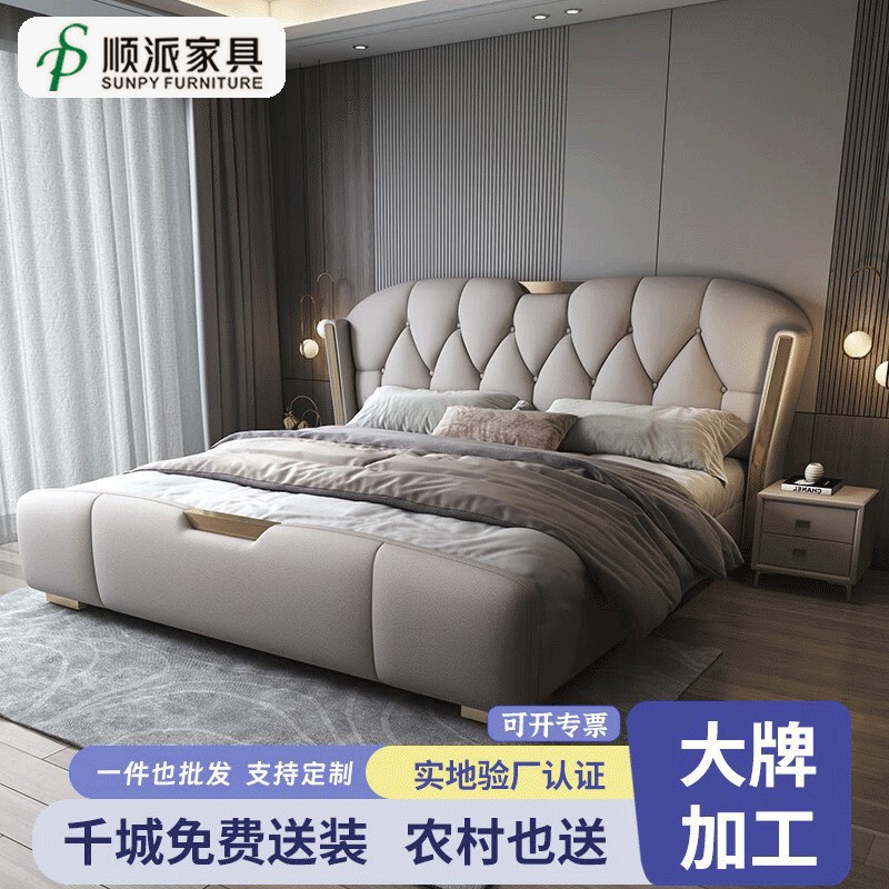 現代のシンプルな本皮ベッドの主臥ツインベッド1.8メートルのシンプルなソフトバッグのツインベッドのベッド2023新型