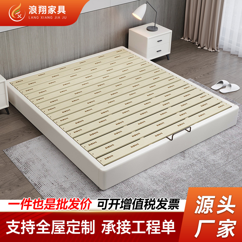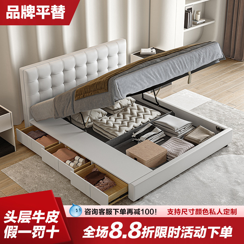 ダブルベッド主臥引き出し付き高箱収納ベッド現代シンプルな主寝室非常にシンプルなツインタイプの真皮ベッド