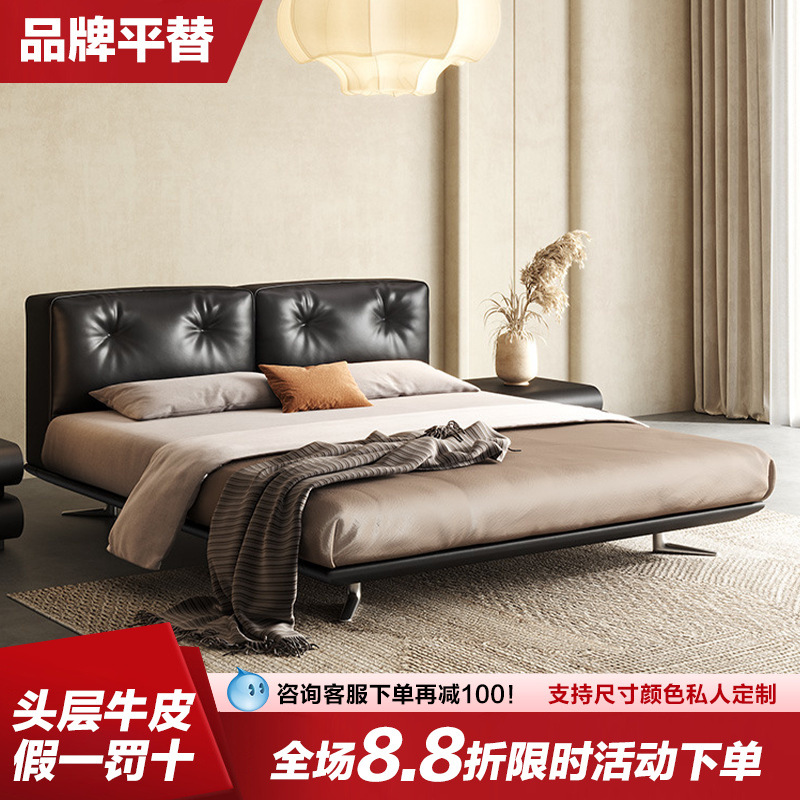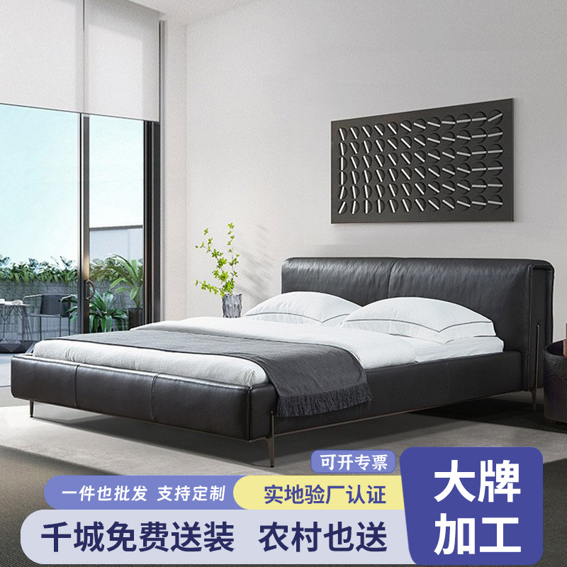 イタリア式の極めてシンプルな本皮ベッド現代ツインベッド主臥1.8メートル頭層牛革ベッドソフトバッグ結婚ベッドデザイナー金