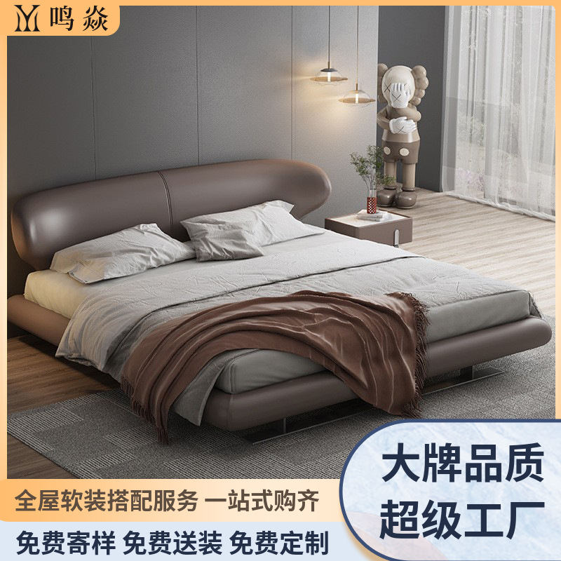 イタリアのミニマリストレザーベッド砂丘マスターベッドルーム大型ベッドモダンシンプルダブルインターネットセレブモデル1.8mウェディングベッドレザーアート