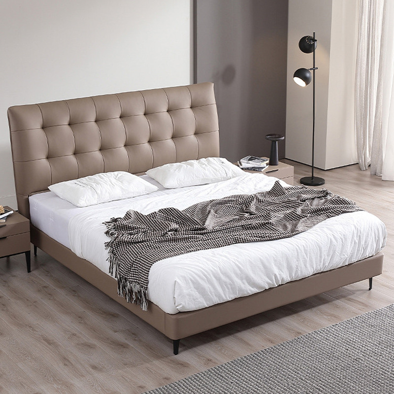 イタリア式の非常にシンプルな本革ベッドのダブルベッドは現代的にシンプルな主寝ベッドのソフトバッグの高い足の小さいタイプのタイプがそろっています。