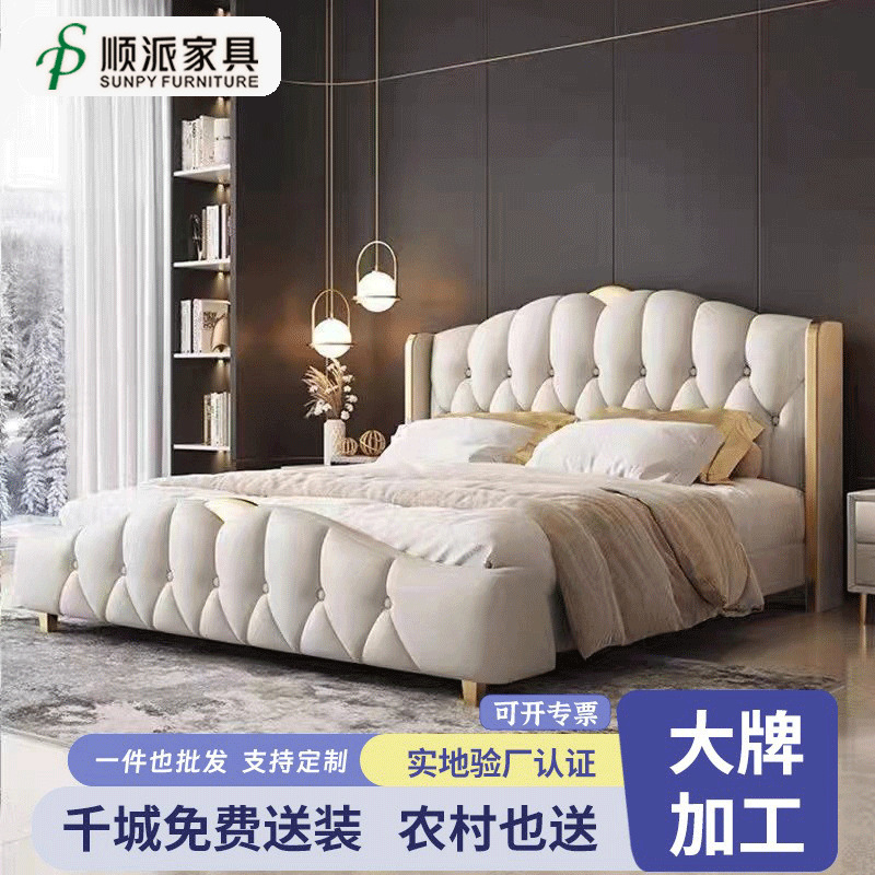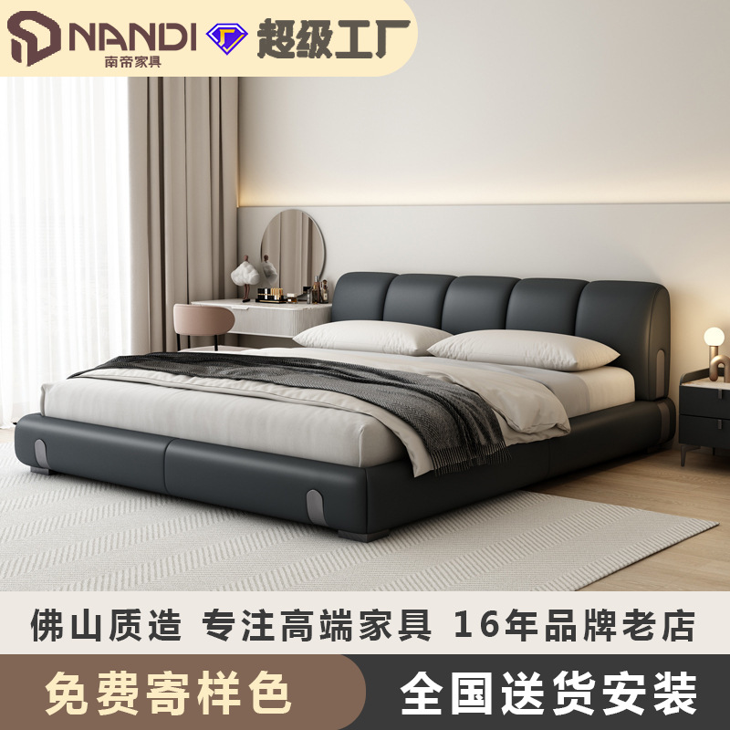 イタリア式極めて簡単な懸濁ベッド1.8メートル寝室現代シンプル佛山ベッド真皮二人象耳
