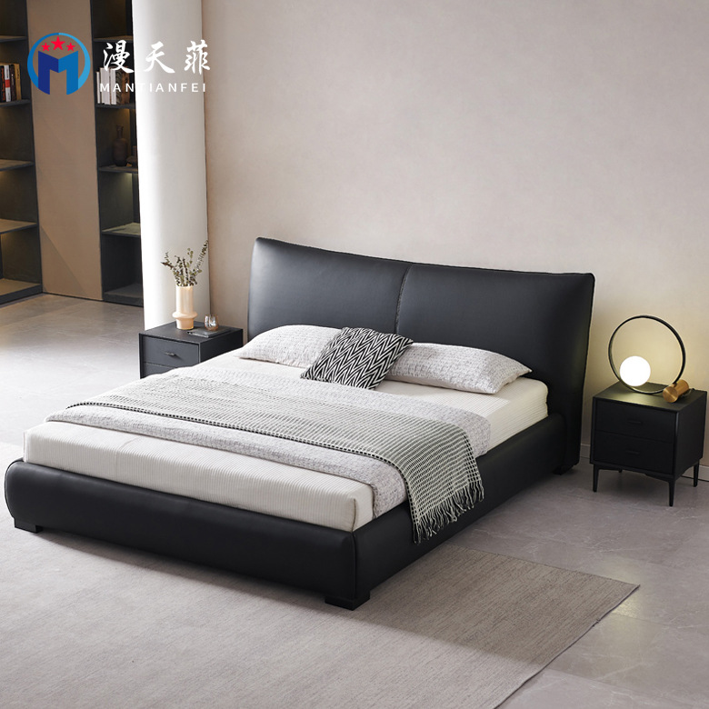 イタリア式の非常にシンプルな本革ベッドは現代的にシンプルな主臥黒色懸濁ベッドがそろっています。ソフトバッグの結婚ベッドのダブルベッドは1.8メートルです。
