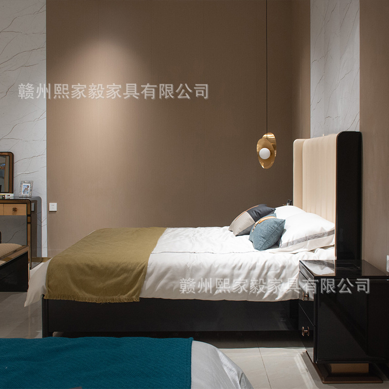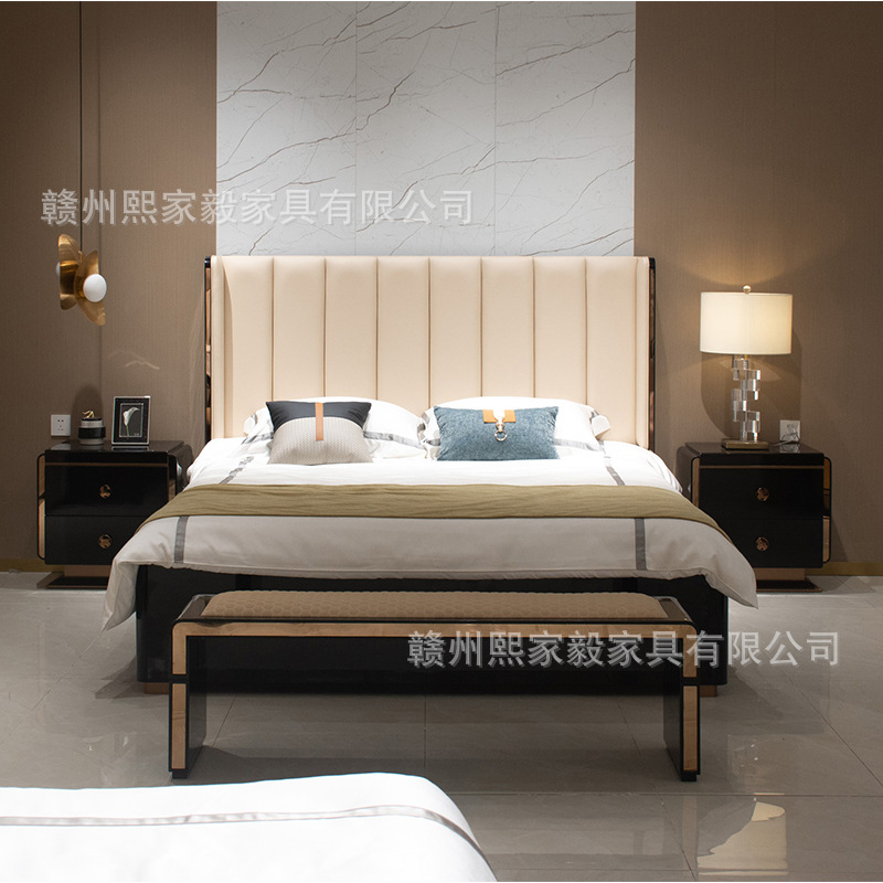 Xijia Yi イタリアのライト高級無垢材ベッドルームベッドシンプルなマスターゲストルームレザーダブルベッドヴィラホテルウェディングベッド家具