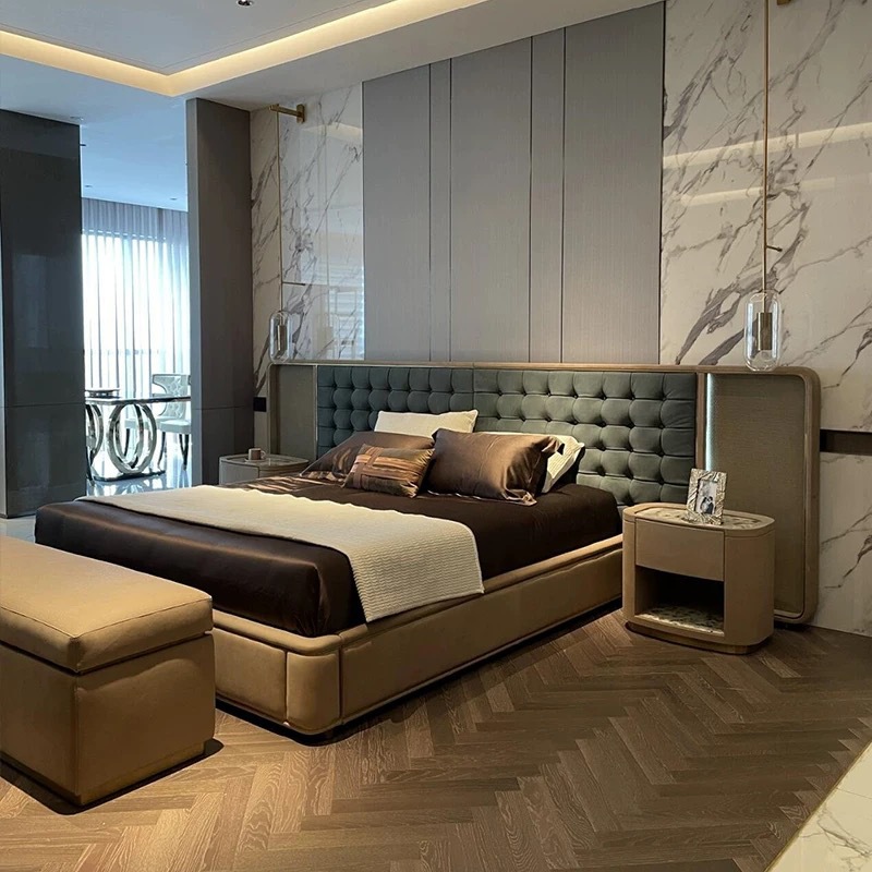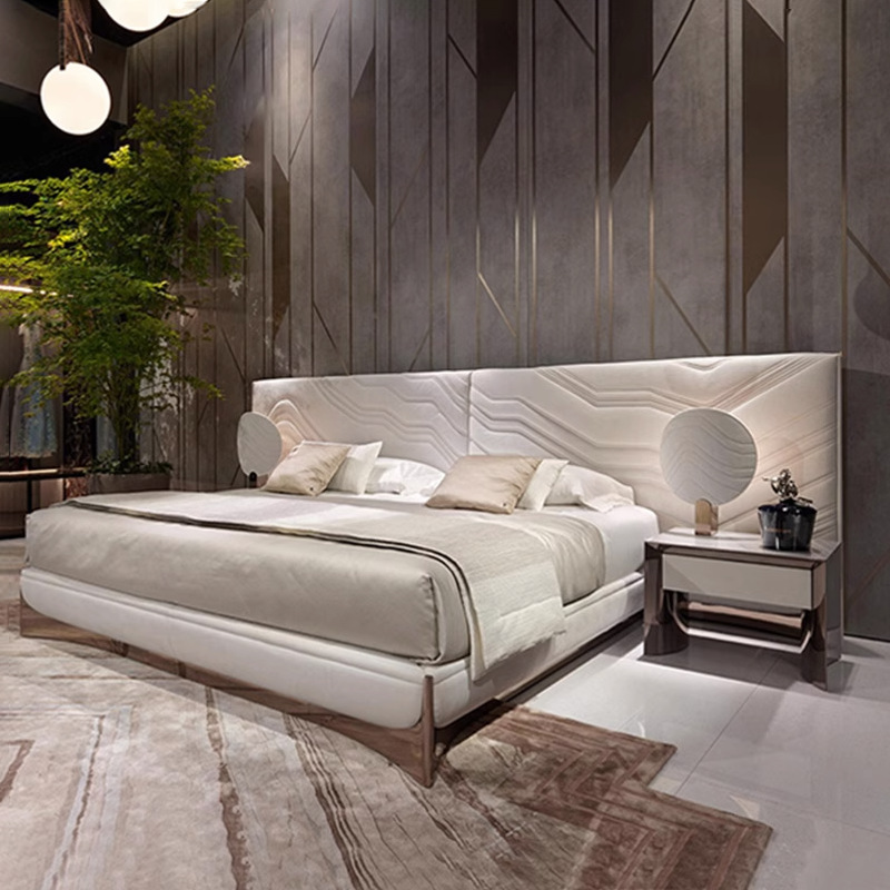 2025 新バージョンイタリアンライト高級つや消しベッド大型フラットヴィラマスターベッドルームベッドダブルベッドデザイナーハイエンド家具