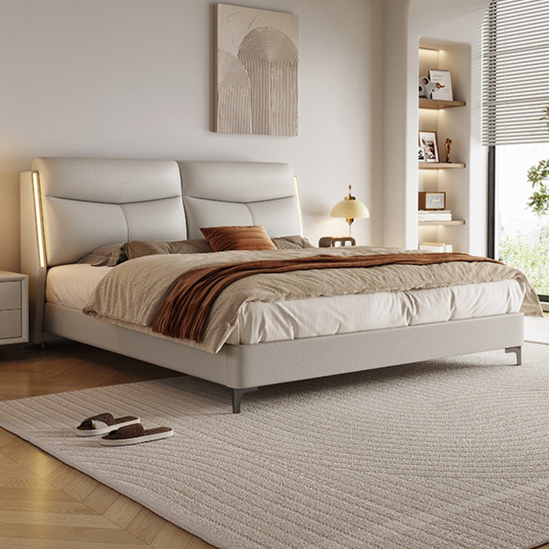 Xijia Yi クリーム ミニマリスト スタイル ホーム モダン ライト 高級ベッド マスターベッドルーム レザー ダブルベッド ダブルサイズを拡大