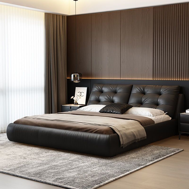 ビッグブラックカウベッドサイドレイヤー牛革マスターベッドルームハイエンドエレガントなソフトパッケージイタリアンモダンシンプルダブル豆腐ブロックレザーベッド