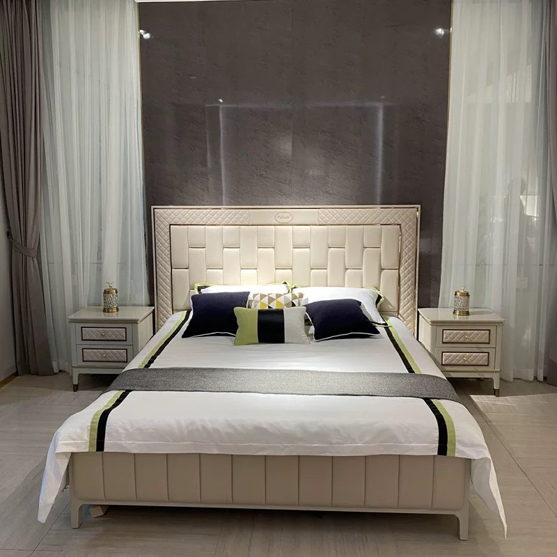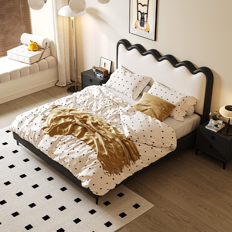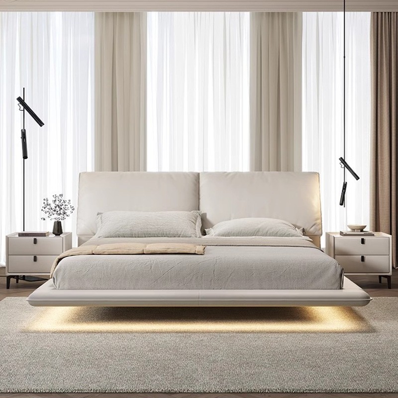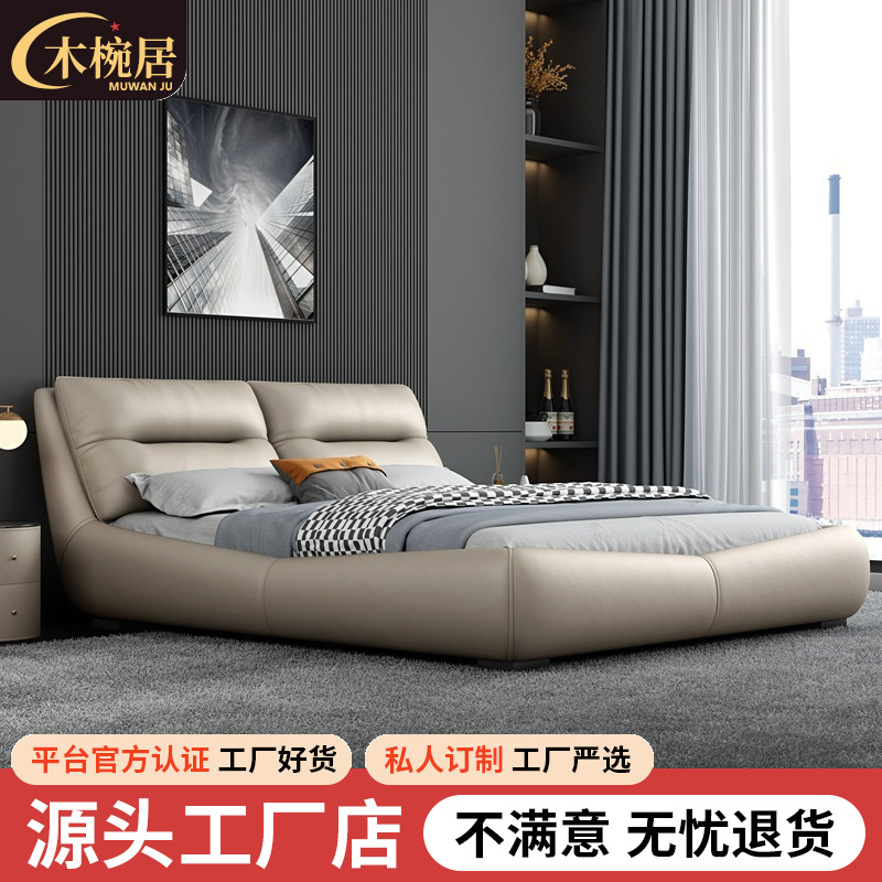 シンプルモダンなマスターベッドルーム 1.8m ソフトベッド ダブルレザーベッド 寝室 ウェディングベッド 1.5m シングル セカンドベッド レザーアートベッド