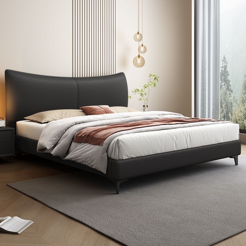 Xijia Yi モダンなシンプルなスタイルのベッド、ナッパレザー、肌に優しく通気性のあるフル無垢材フレーム、信頼性の高い背もたれベッド