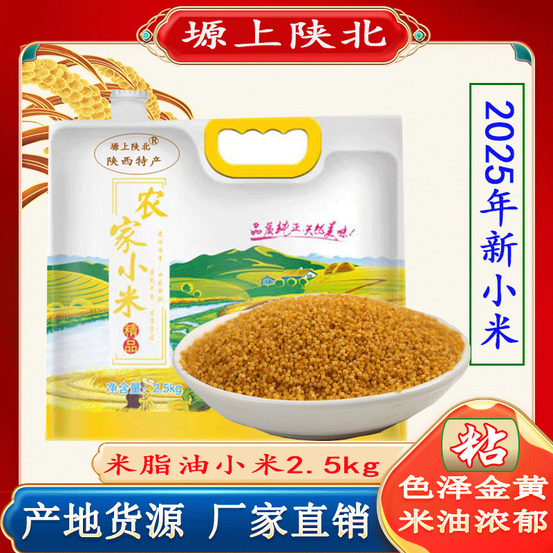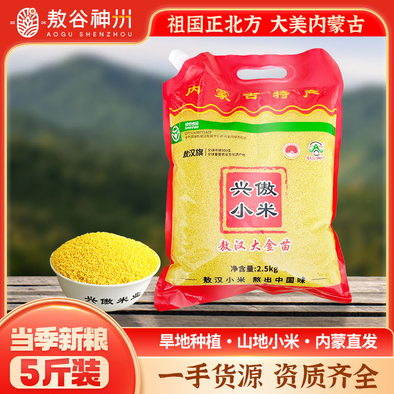 興傲小米2.5kg敖漢大金黄小米五穀雑穀ソフトモチモチ食用小米粥米真空包装