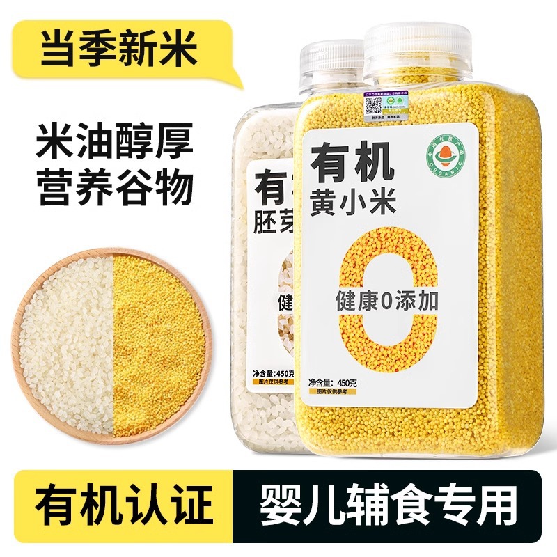 有機食品、全粒穀物、粗粒、高栄養補助食品、胚芽米配合パック、新米、黄小米、有機認証