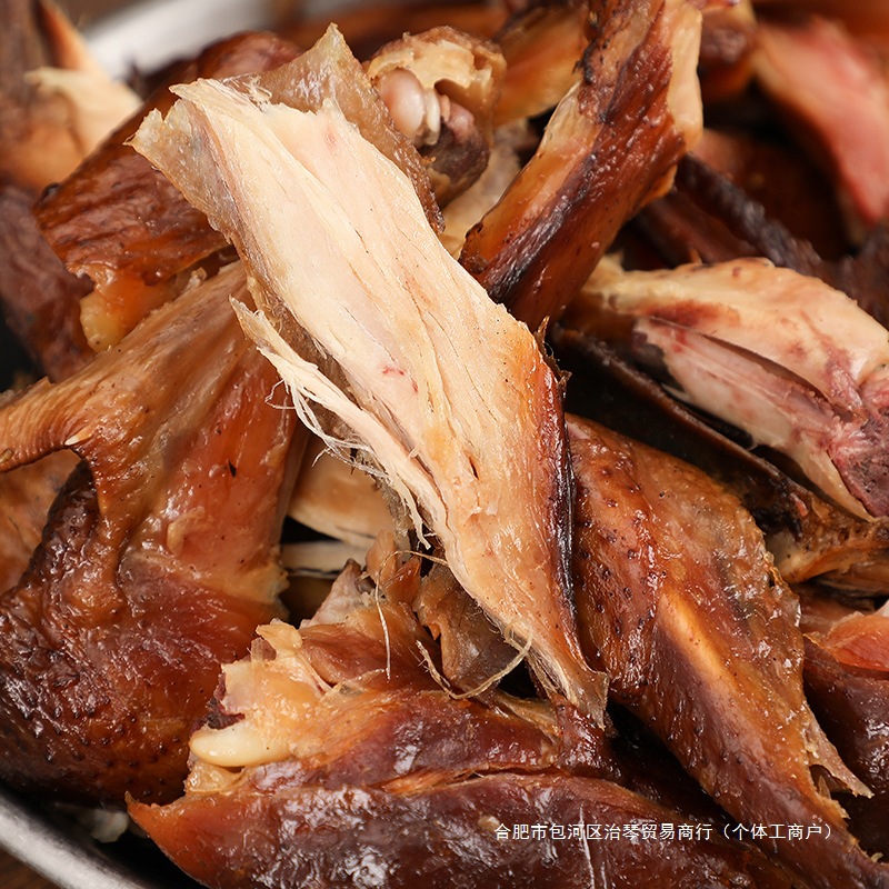 手は風乾鶏を引き裂いて袋を開けてすぐに食べます。