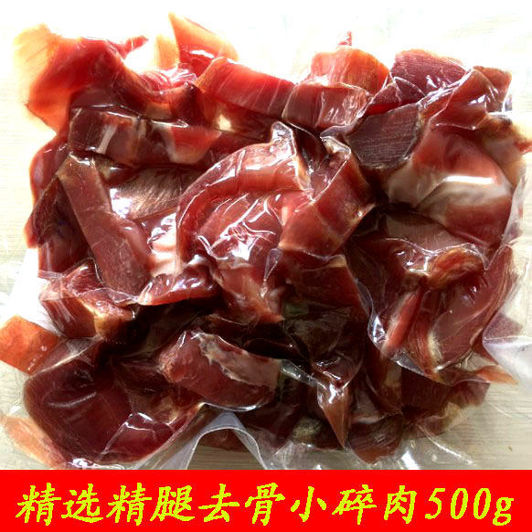 金華ハム500gの大きな砕肉は骨をむいて皮をむいて真空を修理します。