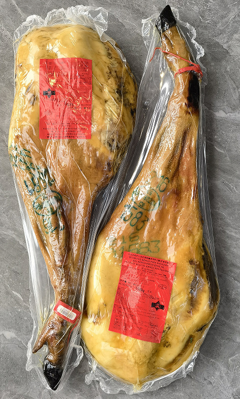 金の字の金華のハムは皮をむいて骨のすねの切れのハムの肉の塊のすねの糸のすねの丁の半完成品の野菜の加工用を使います。