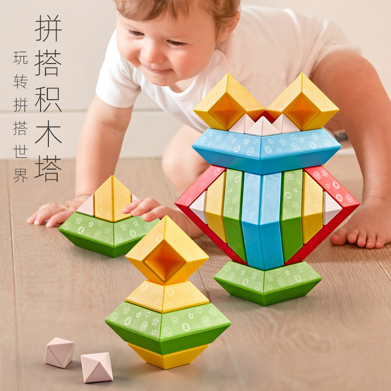 ピラミッドの積み木の子供の益智は積み木の大きい粒子の育成訓練機関の人気があるおもちゃを組み立てて現物の卸売りを代行します。