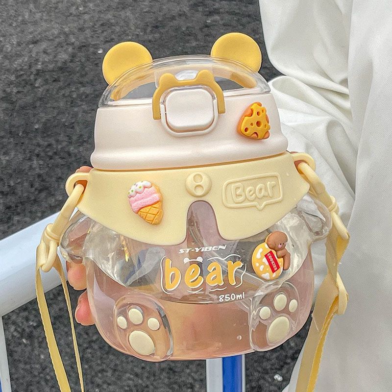 子供用コップ夏の転倒防止携帯ストローカップ女子の高颜値は、コップの魔力熊の四角いコップを斜めにかけることができる