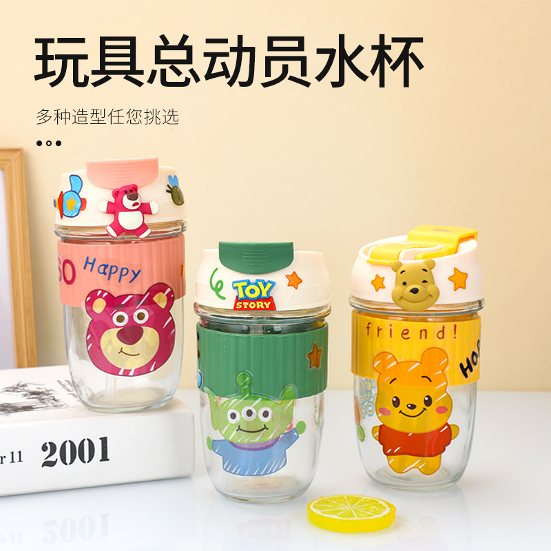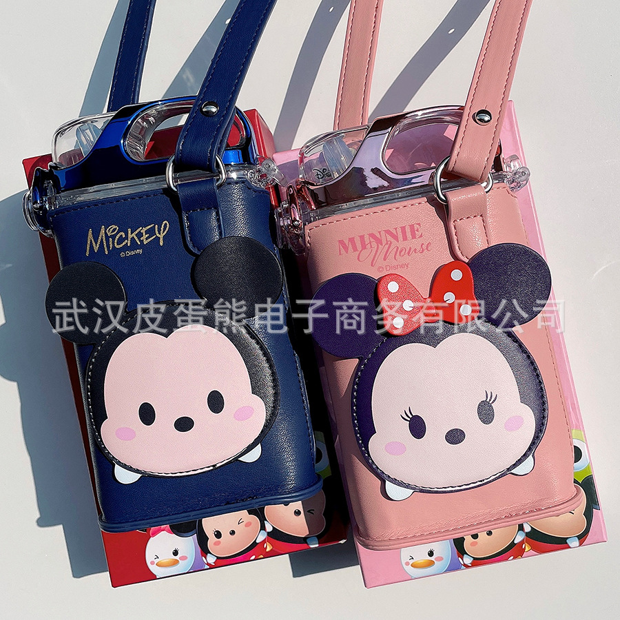 ディズニー子供水カップフラット角型ストロー水筒皮カバーいちご熊スケール付き学生カップ