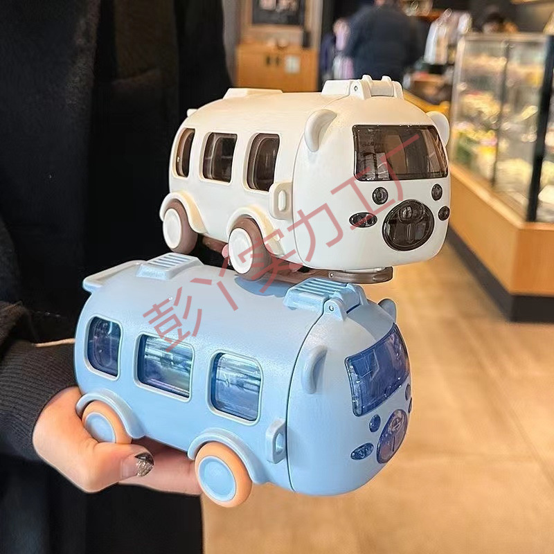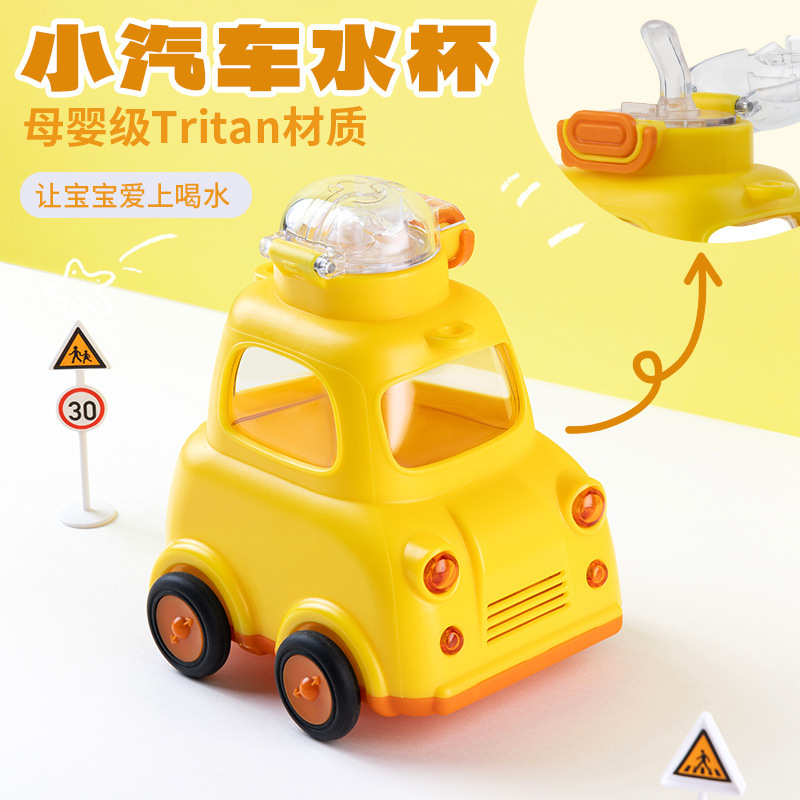 バス、車、水筒、漫画、ストローカップ、おもちゃ、トリタン、母子、子供、学生、プラスチックカップ、大容量カップ