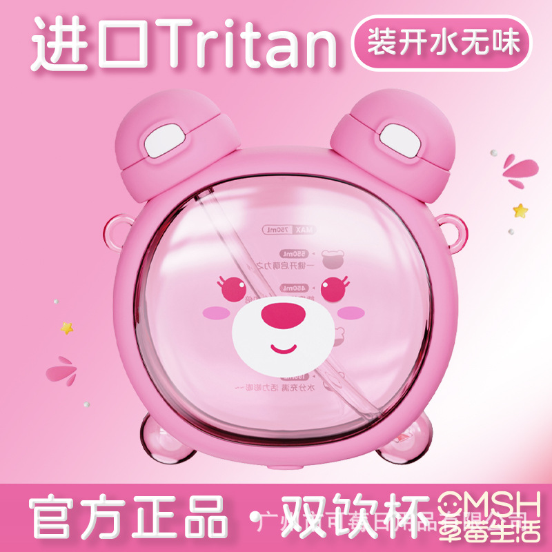 ディズニー正規認定ストロベリーベア ストローカップ ダブルドリンクカメラカップ 子供女子学生 大容量ウォーターカップ 夏