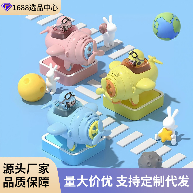 夏の子供用ポータブルストローカップ、見栄えの良い小型飛行機型おもちゃウォーターカップ、多機能人形漫画ケトル