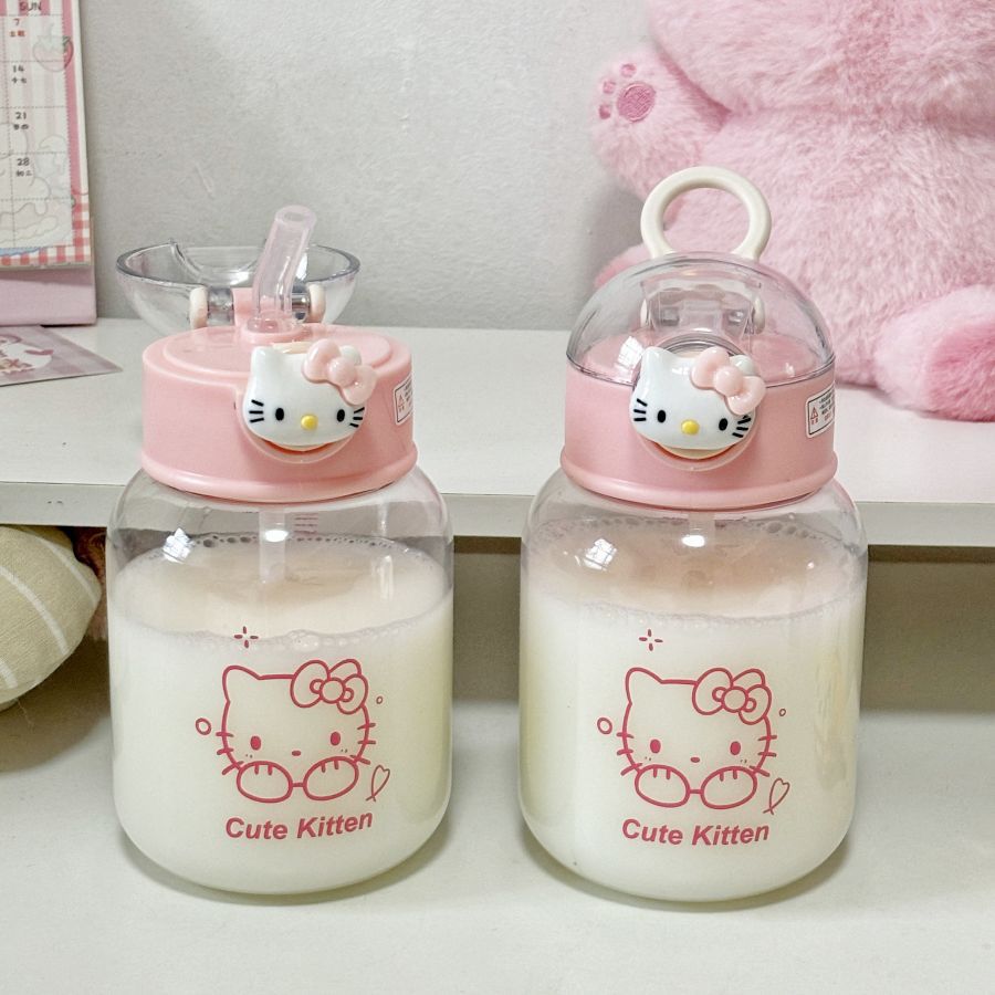サンリオ ガラスストローカップ ガーリー目盛り付きミルクカップ キティちゃん ドリンク ジュース 蓋付きミルクティーカップ ネット人気商品