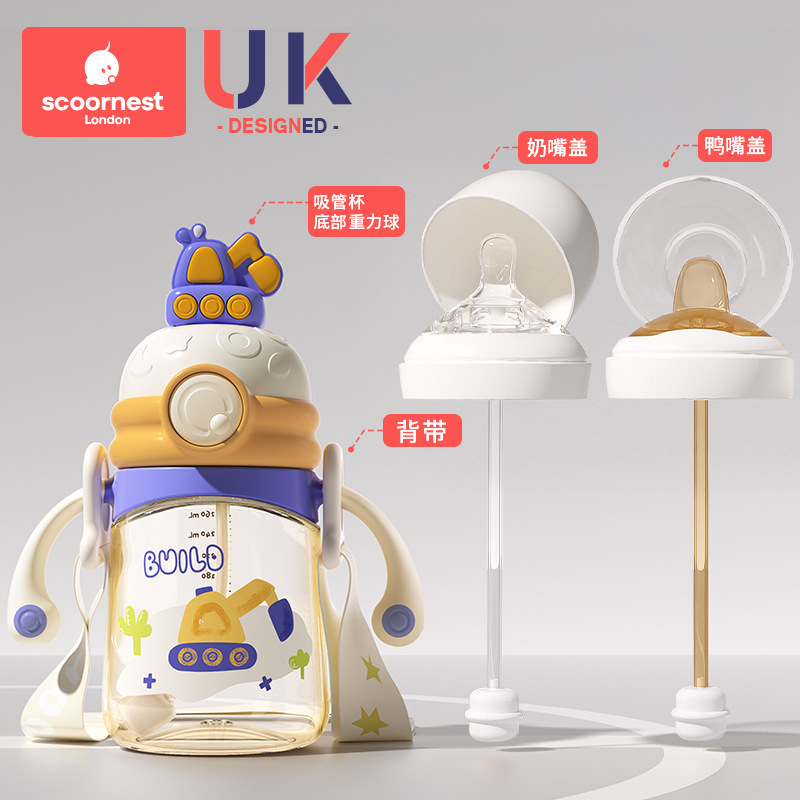 欧貝尼240ml超広口径PPSU公仔ミルクカップ子供ストローカップ哺乳瓶赤ちゃん防噴水カップ