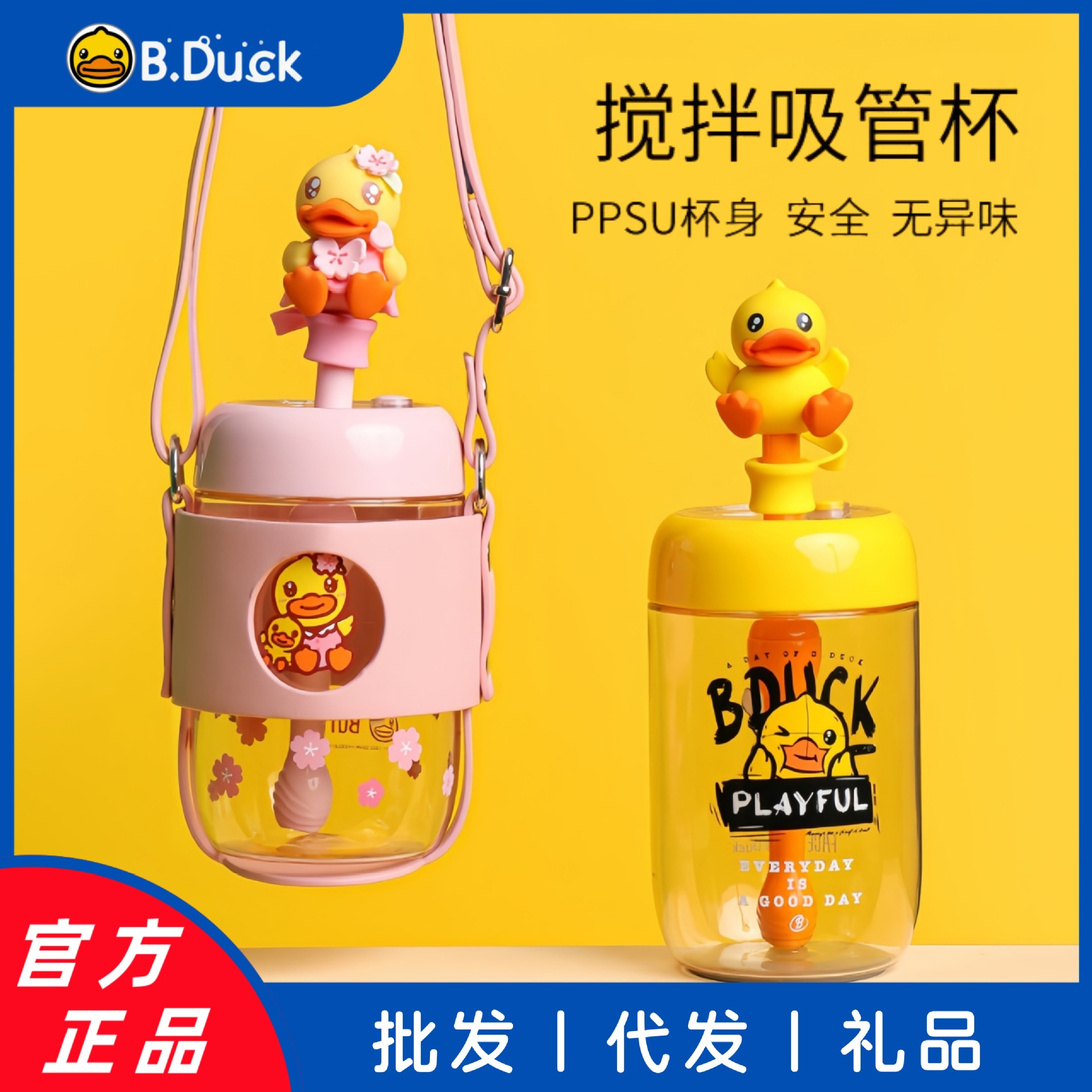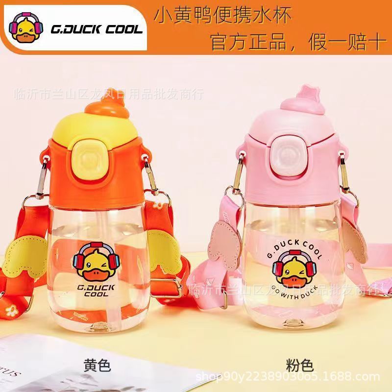 B.duck小黄鴨児童大容量ストローカップストラップ屋外運動冷水カップ男子少女