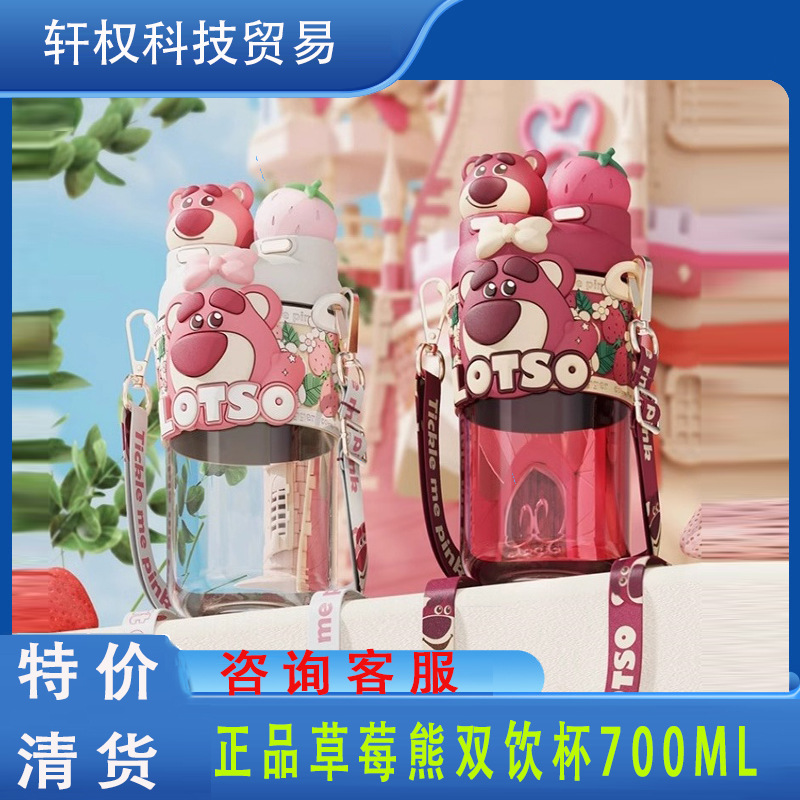 网红双饮杯可爱小熊水杯儿童夏季大容量吸管杯子女水壶学生大肚杯