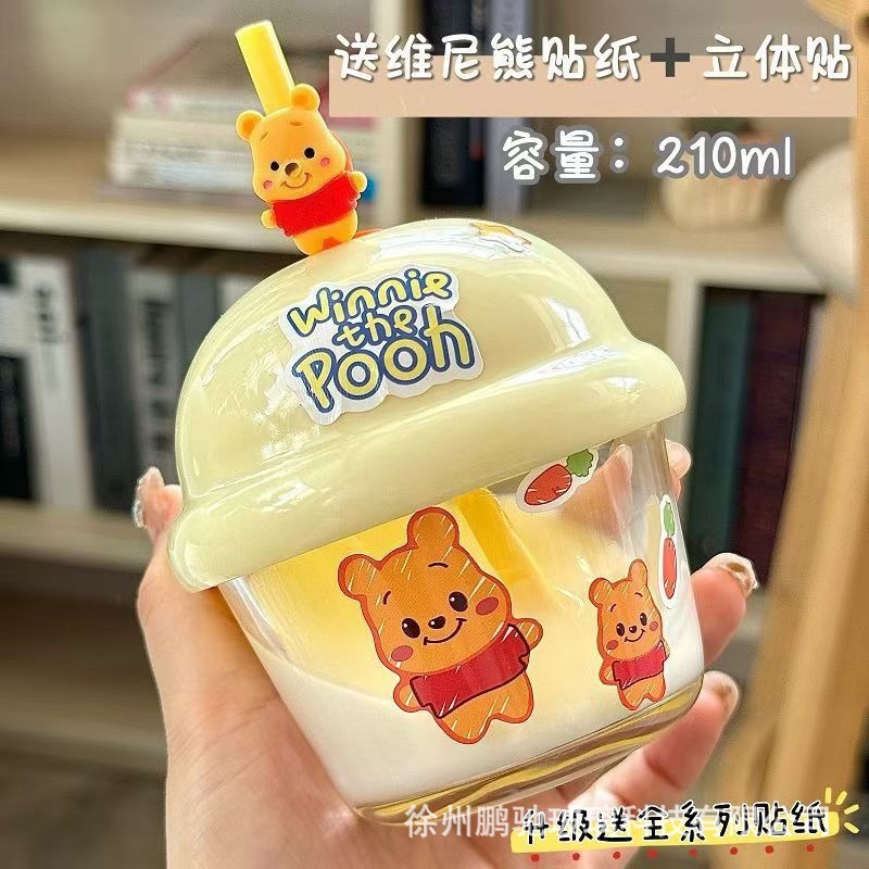爆型熊グラスファッションストローカップ高ホウ素シリコン花茶飲料カップ高颜値蓋付きグラス