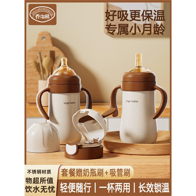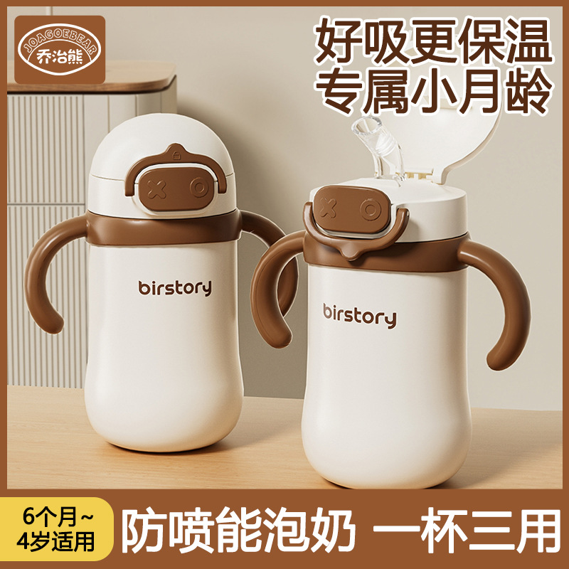 日本进口乔治熊婴儿保温杯小月龄宝宝保温奶瓶一岁儿童吸管水杯学