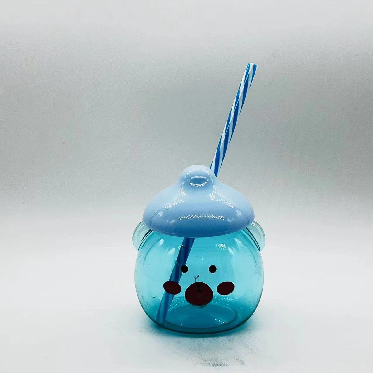 夏の小学生携帯熊漫画ストローコップカラー透明pcプラスチック宇宙運動水筒卸売り