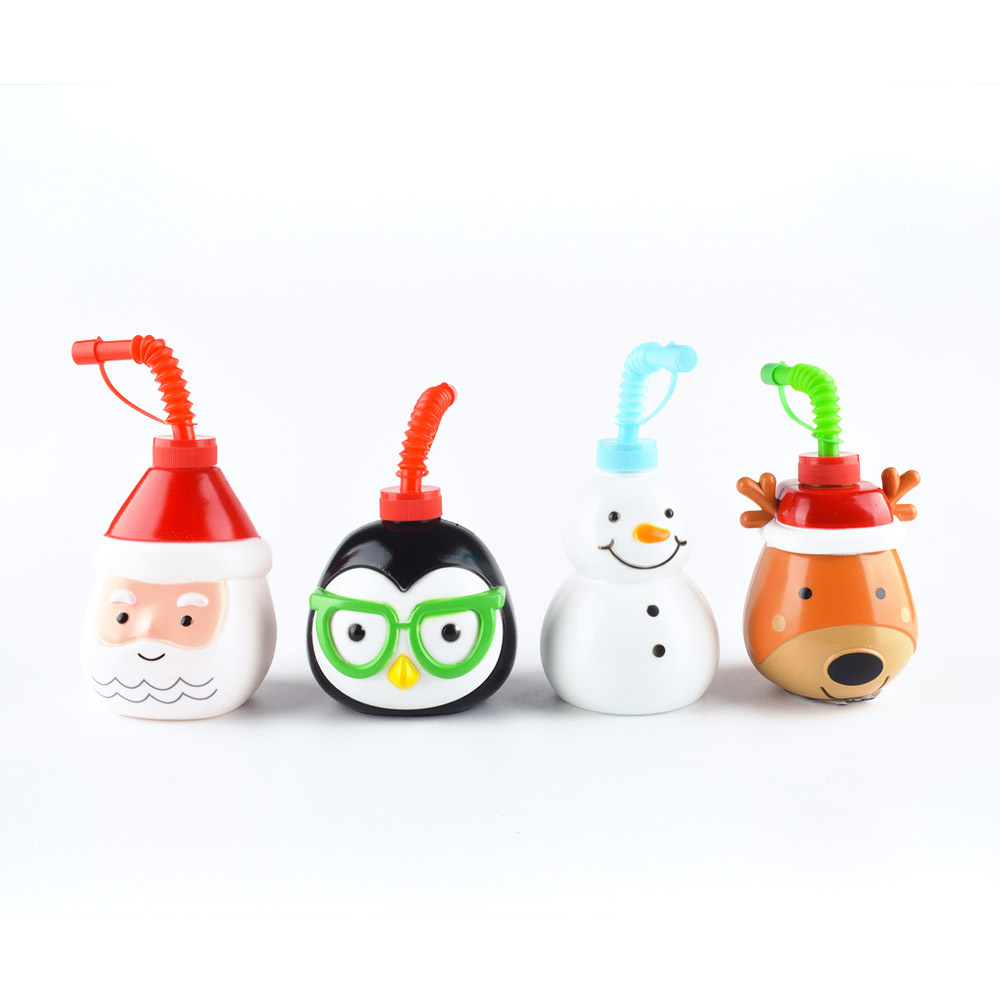 メーカー直販pvc環境保護かわいいアニメ子供雪だるま鹿クリスマスストローカップ工場卸売りスポット