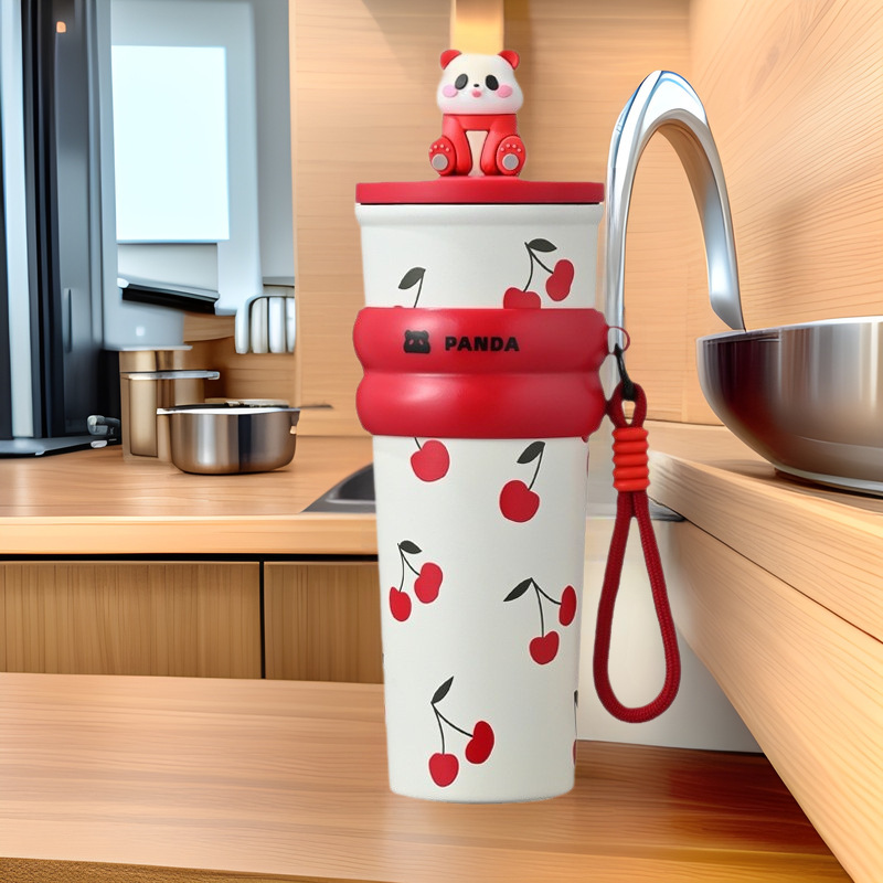 かわいい人形保温カップ高颜値コーヒーカップ女子大容量ストローカップ携帯アニメスポーツカップ