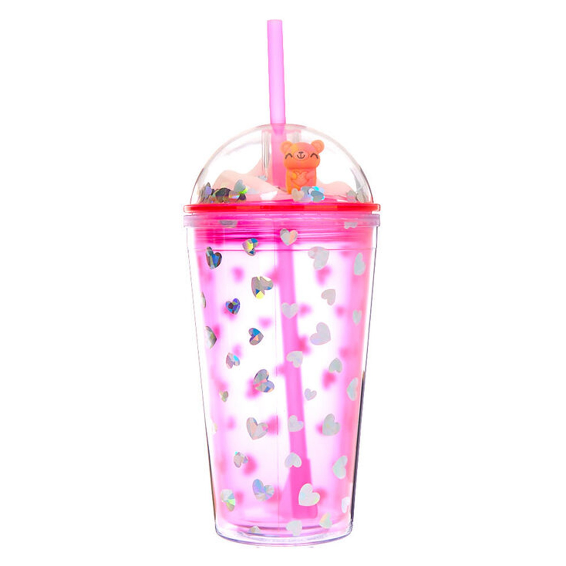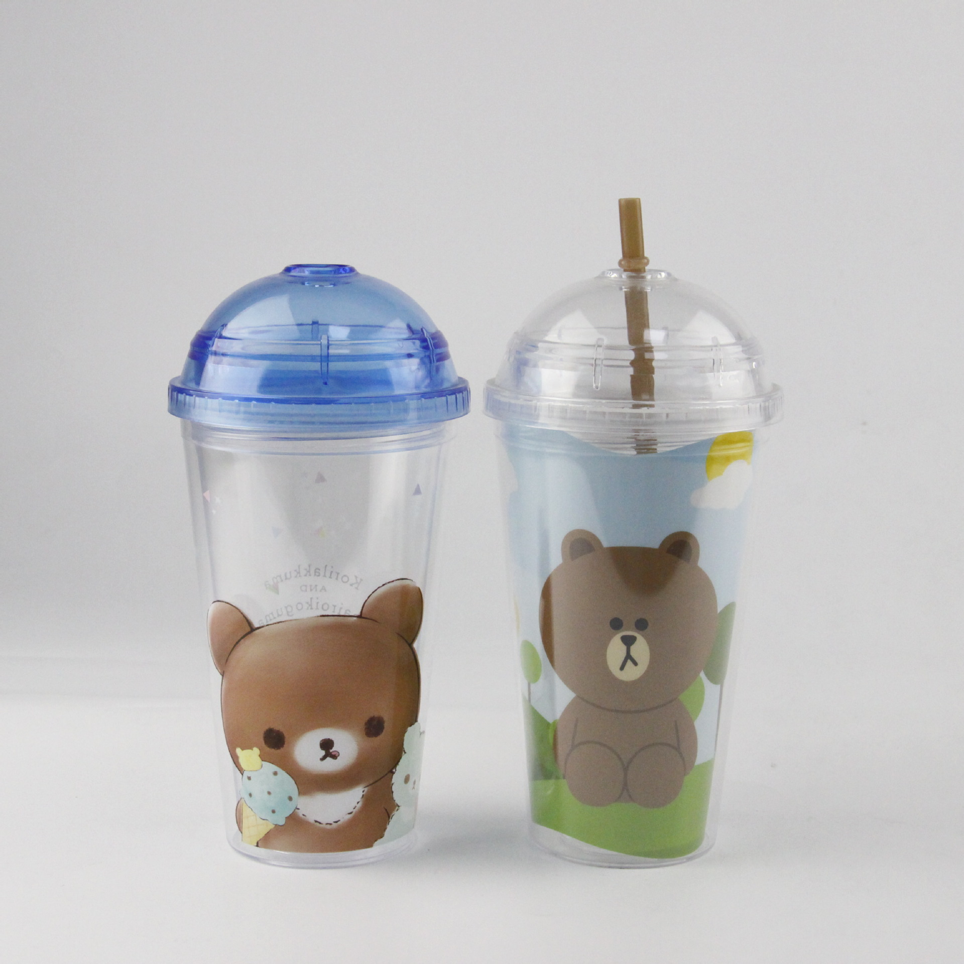 16オンス丸アニメ熊二重ストローカップ定柄450mlプラスチックカップクリエイティブ透明ギフトカップ