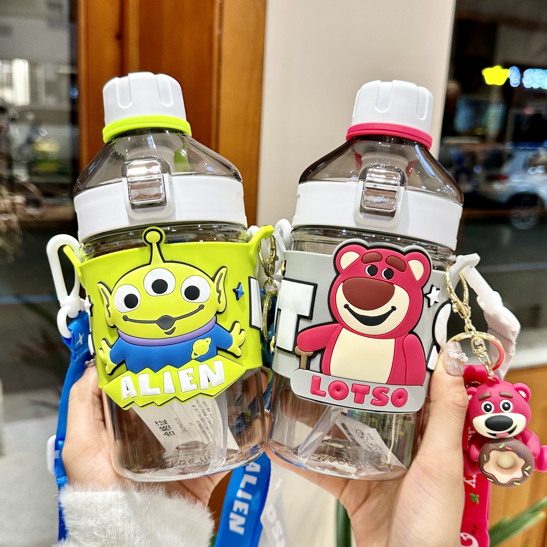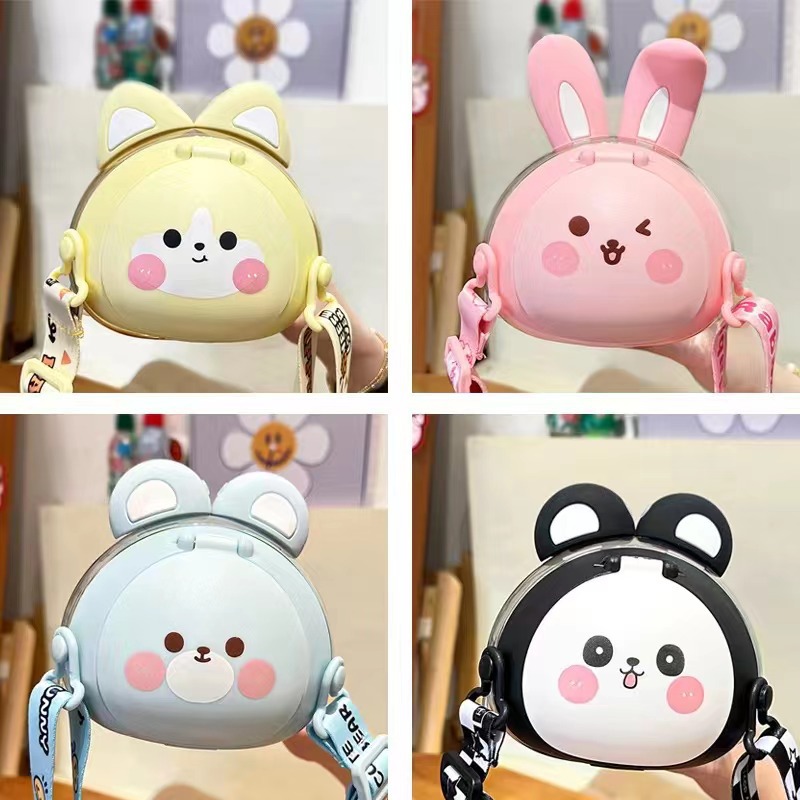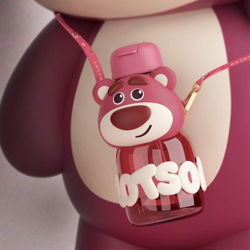 高颜值创意草莓熊卡通杯带背带可爱便携学生儿童杯弹跳盖带吸管杯