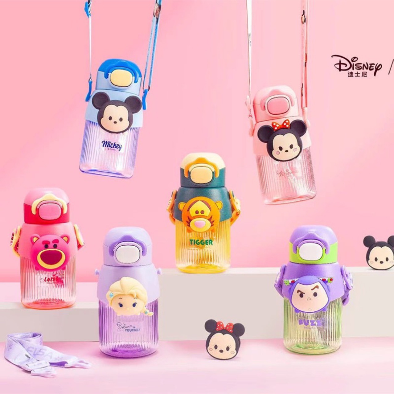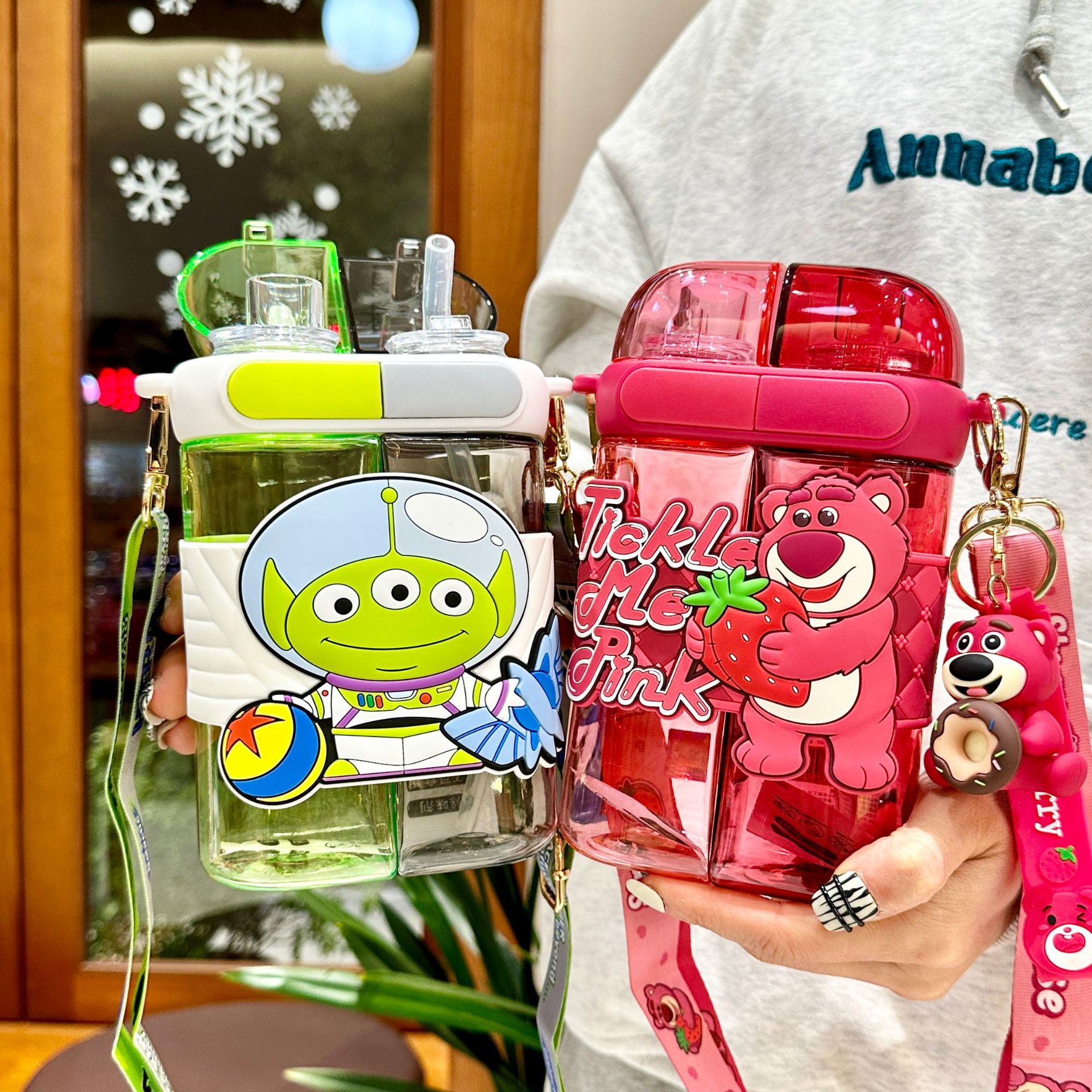 夏tritan穴ストロー水カップフラットストレートドリンクエルサストラップケトル大容量イチゴベア