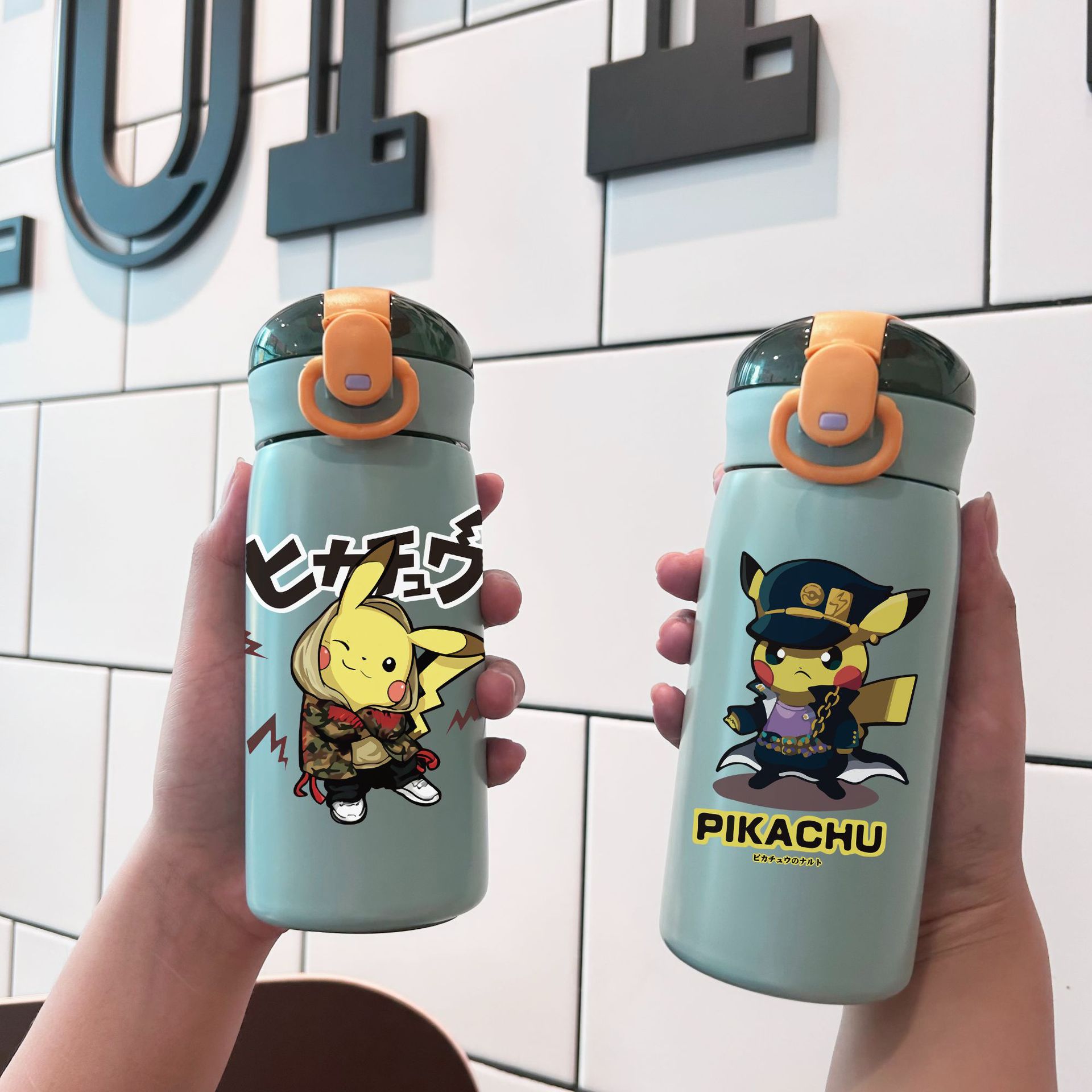 新型ピカチュウ水杯子供高颜値漫画ステンレスストローカップ男かっこいい水杯転倒防止携帯