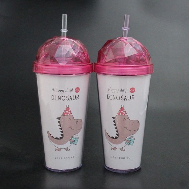 ダイヤモンド蓋雪花熊二重カップ420mlプレゼントクリエイティブデパートストローカッププラスチックカップダイヤモンドストローカップ
