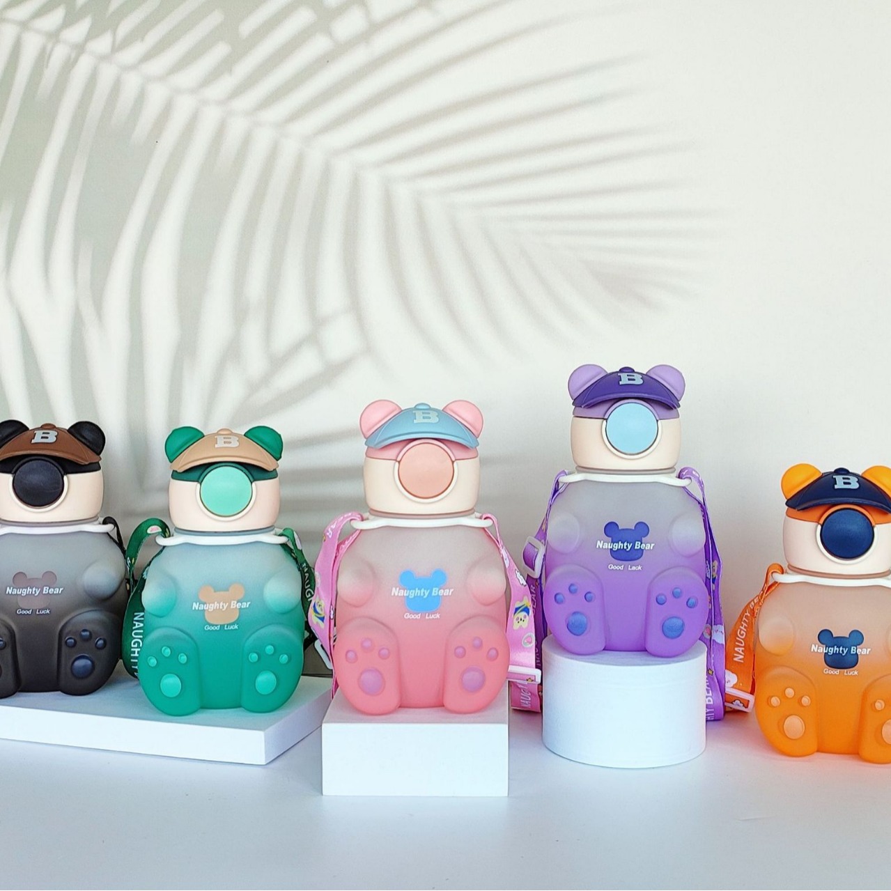 高颜値ネット赤帽熊学生かわいいアニメ児童水筒プラスチックストローカップ児童水筒夏2024